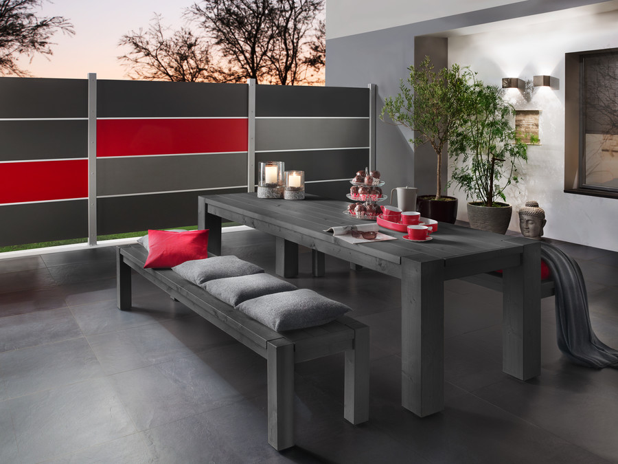 bestehend aus 4 Einzelprofilen und 3 Übergangsleisten. Material aus 6mm Aluminium-Verbundplatten (ACP), Leisten aus Aluminium